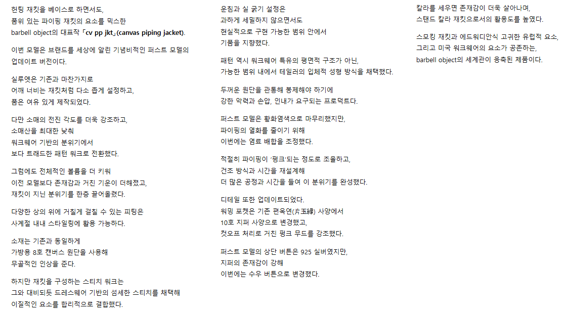 1) 바벨오브젝트 24AW cv pp 워크 자켓