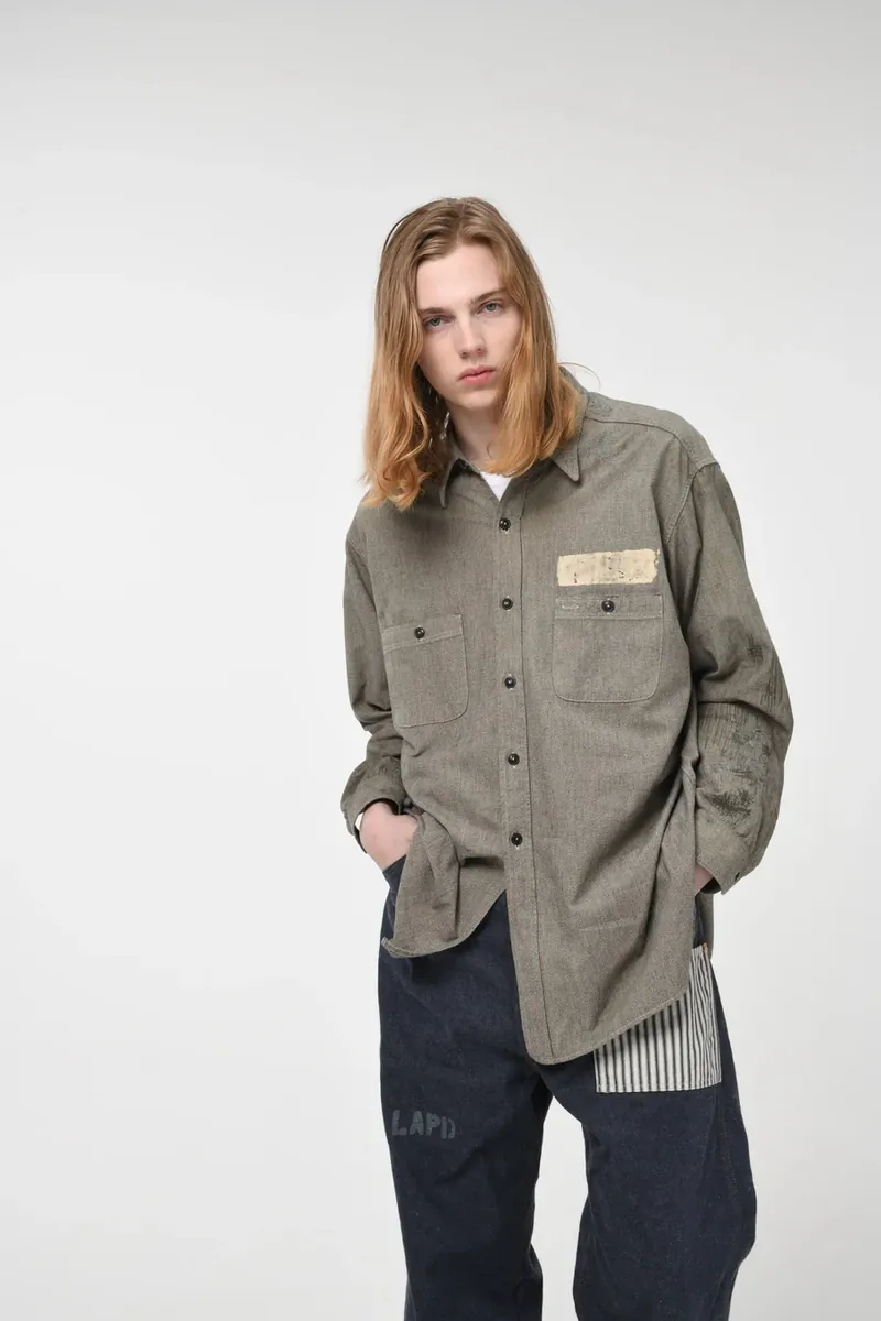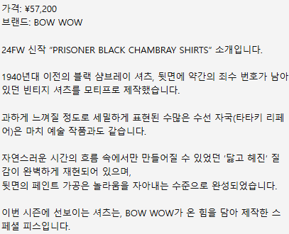 XL) BOWWOW 바우와우 24FW 프리즈너 블랙 샴브레이 셔츠