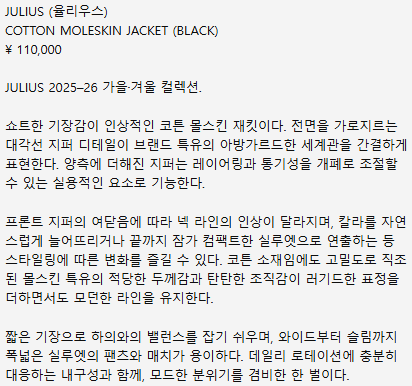 3) 율리우스 julius 25-26AW 몰스킨 자켓