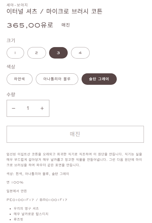 XL) 세야 seya. 이터널 셔츠