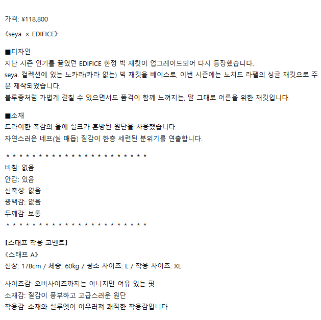 XL) seya 세야 드라이 울 실크 테일러드 자켓