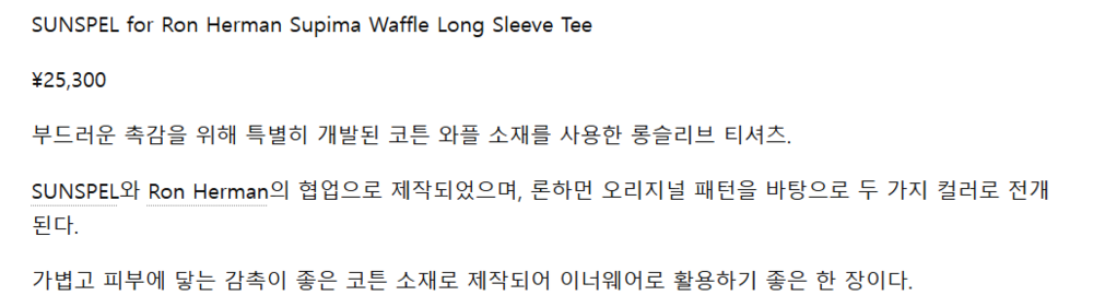 M) 선스펠 * 론 하만 와플 롱슬리브